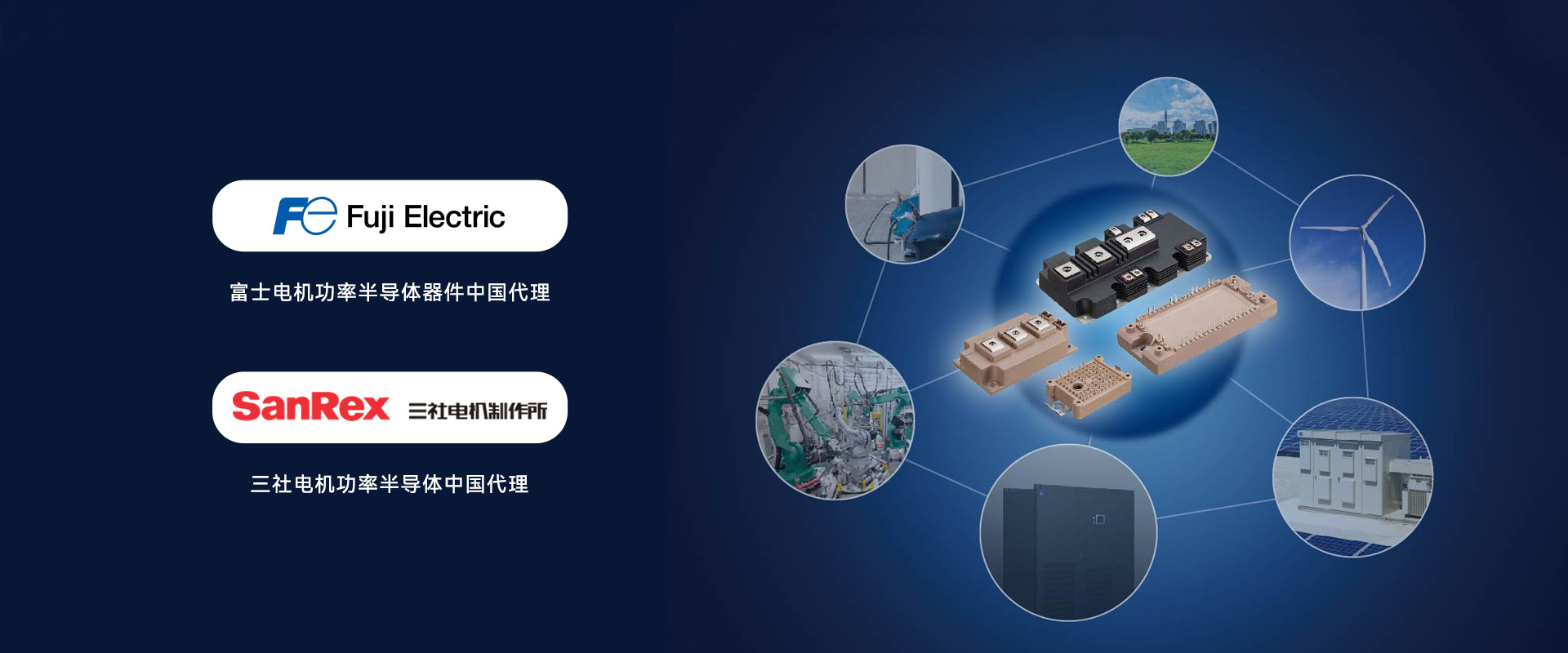 廣州華工科技開發有限公司在中國率先引進國外先進電力電子器件,先后獲得日本富士電機功率半導體中國代理、日本三社電機半導體的中國代理。公司多年來致力于富士功率半導體在中國的推廣與應用,是富士電機公司合作最長、最具實力的代理商,業務遍及UPS、變頻器、逆變焊機、開關電源、風電、光伏、電動汽車等領域,與國內多家知名企業建立了長期穩定的合作關系,在中國電力電子半導體市場有著廣泛的影響力。